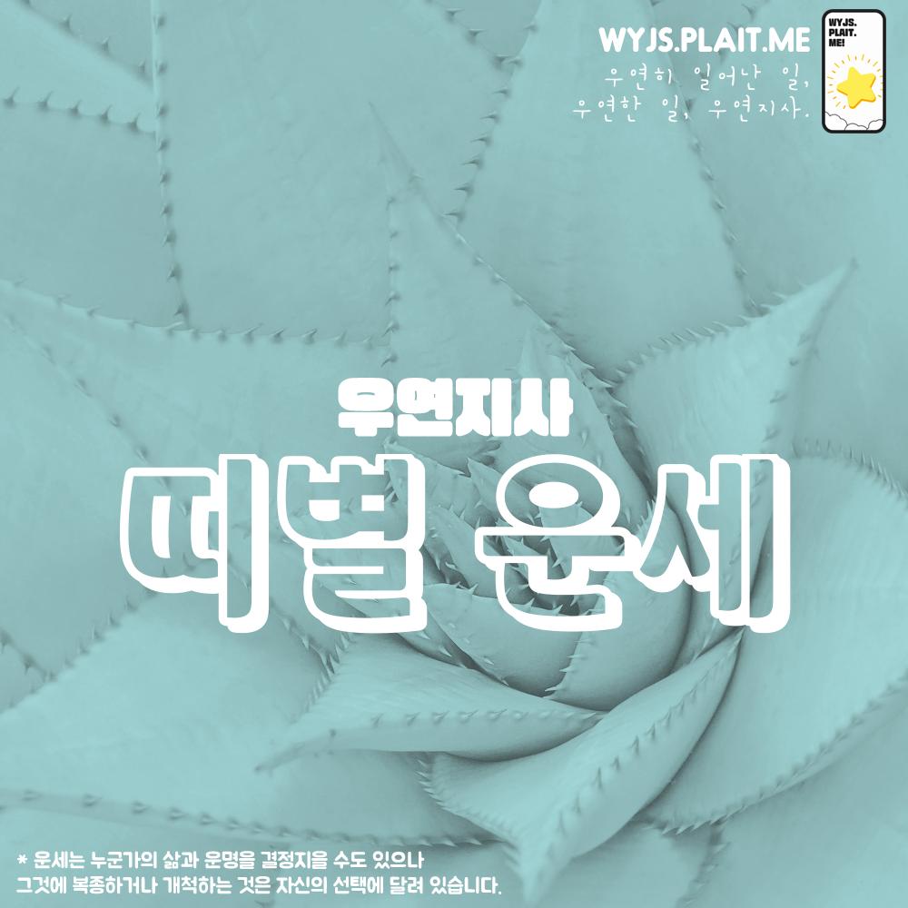 조금 더 자세한 운세 우연지사 홈페이지에서 무료 주간운세 , 오늘의 운세 , 별자리 운세 , 띠별운세 , 오늘운세 , 타로카드운세를 무료로 확인하세요.